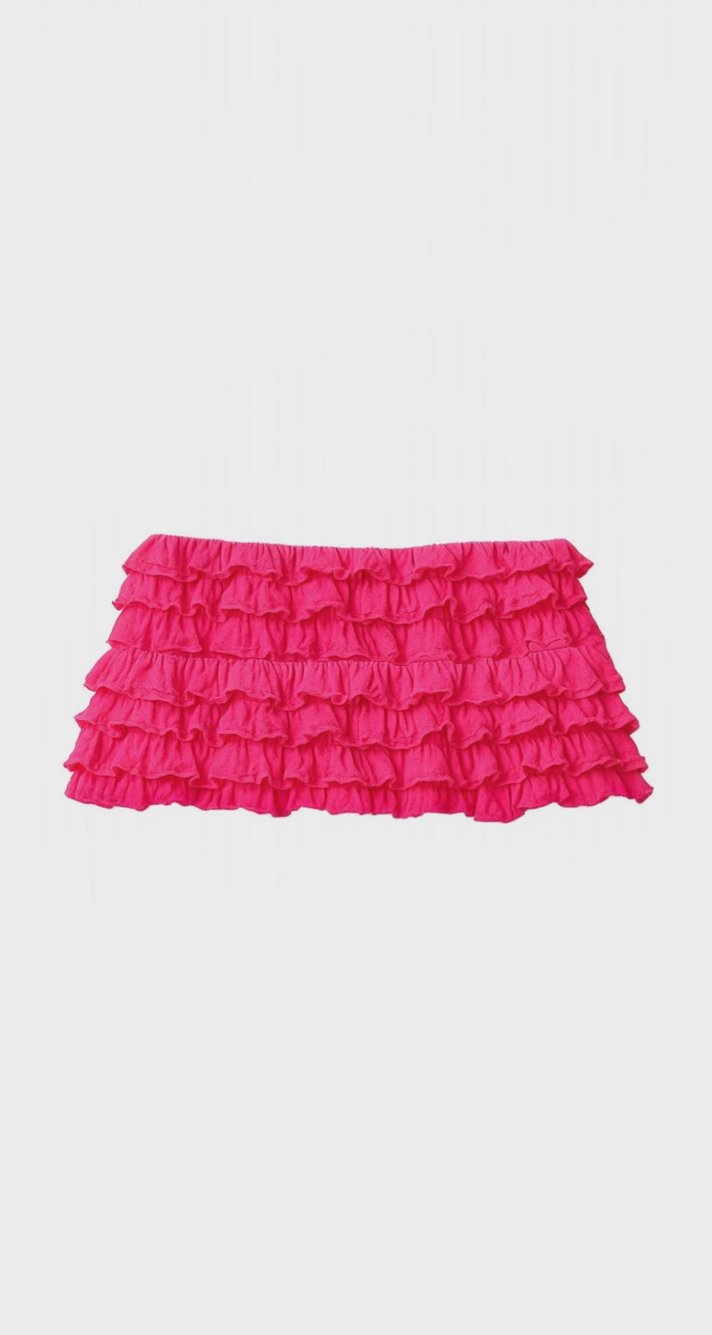 3 samples later, we nailed it. The Afterparty Mini is eight inches of neon pink ruffles - just long enough to cover your ass.